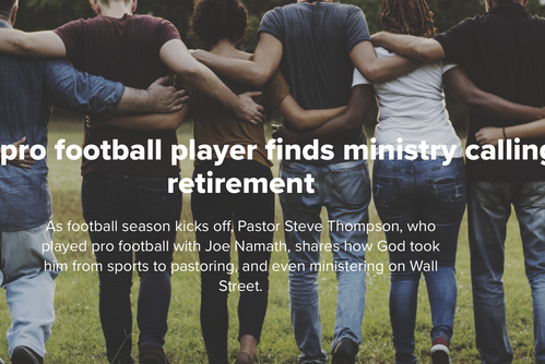 For Stephen Thompson, his professional life has gone in three distinct stages. God brought him to NYC to play with the NY Jets as a defensive end, where he won a Super Bowl ring with legend Joe Namath. He then spent a decade as a business consultant with Gossard-Pyron & Associates. Following his years in business, he became a pastor for thirty years in Foursquare churches in Snohomish County. These three eclectic careers all prepared him for his current call- missionary to Wall Street. His ring and his business acumen open the doors for him to lead Bible Studies at Goldman-Sachs, prayer meetings at the NY Stock Exchange, and mentor and disciple stockbrokers and professionals in New York City. Only God could plan a career path like this!